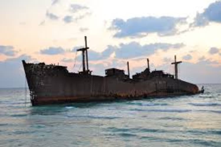 کشتی یونانی یک نماد کلاسیک از کیش است . این کشتی عظیم در سال ۱۳۴۵ در نزدیکی روستای باغو به گل نشست و اکنون یکی از بهترین لوکیشن ها برای تماشای غروب آفتاب در خلیج فارس به شمار می رود. اگرچه امکان نزدیک شدن به خود کشتی وجود ندارد،اما منظره آن در هنگام غروب،خیره کننده است.