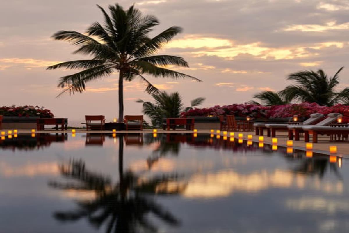 استخر اصلی هتل، با کاشی های مشکی رنگ نمادین خود، یکی از مشهورترین مکان های هتل است. این استخر که در مرکز هتل قرار دارد، حس استخری در یک معبد را القا می کند و منظره ای بی نظیر از اقیانوس را در اختیار میهمانان قرار می دهد. علاوه بر آن، استخرهای دیگری نیز در نزدیکی ساحل برای استفاده میهمانان در دسترس هستند.